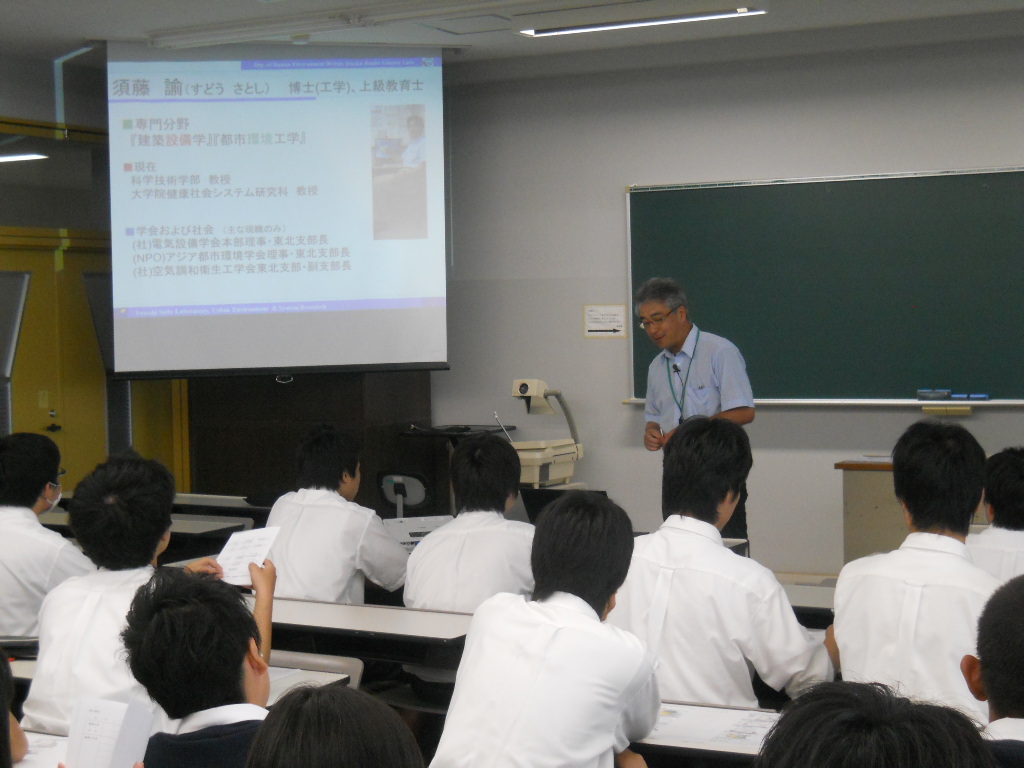 そのトップバッターは須藤教授で、「建築設備:建物の水とエネルギーの仕組み」というテーマで、環境にやさしい建築や住居のための原理と仕掛けについてお話しをしました。